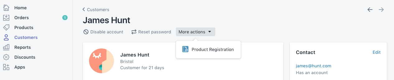 As part of deep integration, its possible to see each customer's product registration in the customer admin, just click in link under more actions.