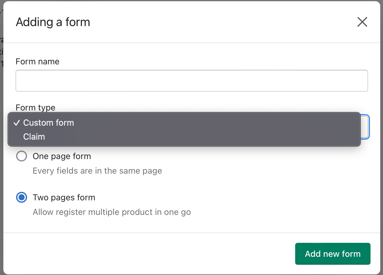 Claim - this will create a default claim form with default fields - those fields can be customize later on