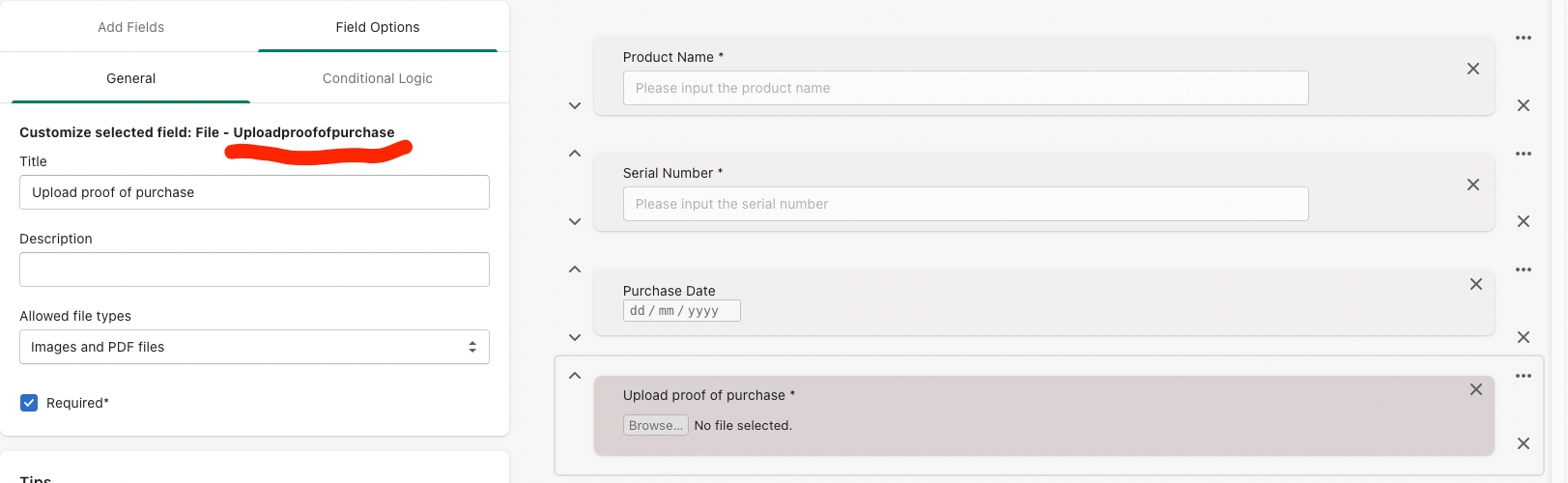 If need to add data to different form e.g not the default product-registration, a new key will needed add to the registration "type": "form-slug-name", then form slug name can be found in the Form > View on frontend