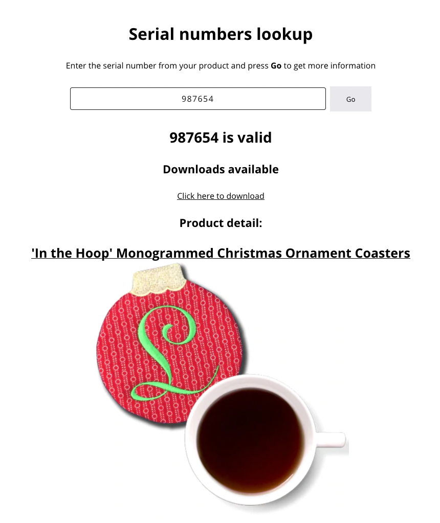 The simple UI allow customer to enter serial number and get the relevant information for it