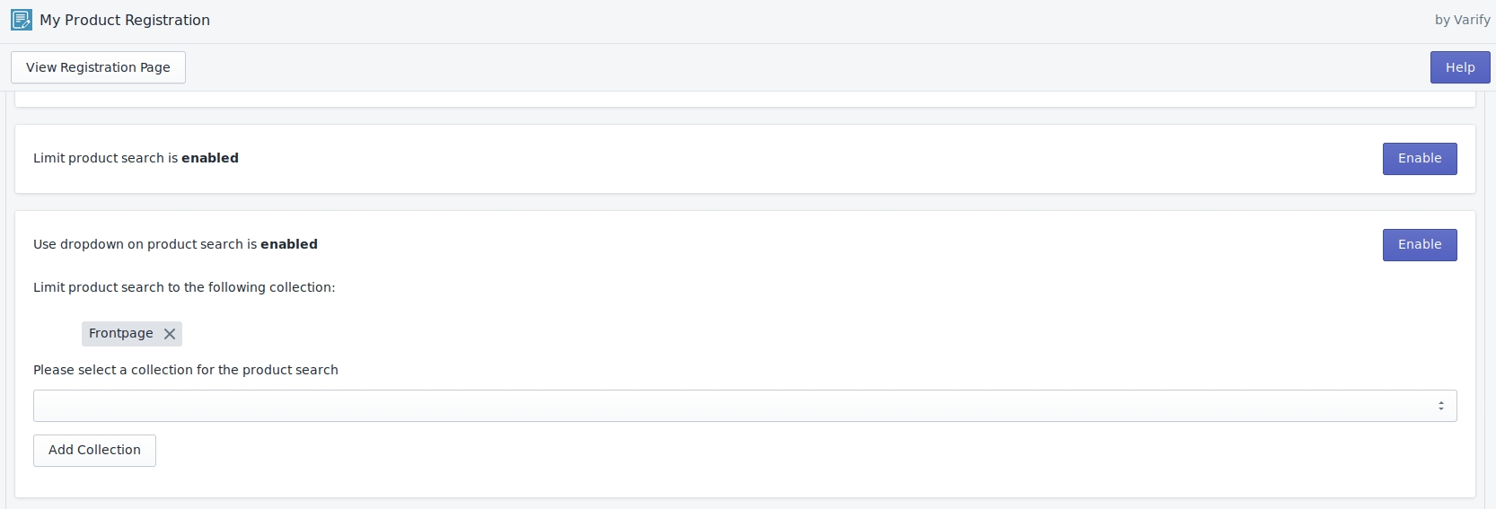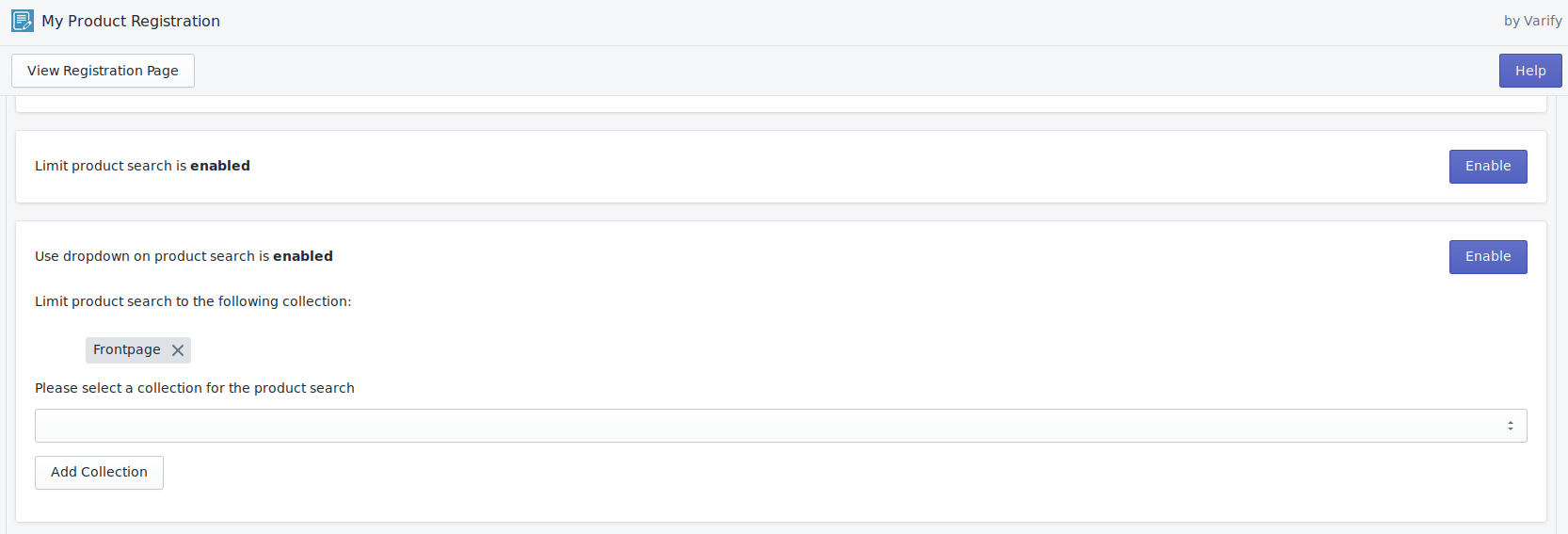 Once the collection is created, you will need to go to App Admin > Form > Settings > General > Enable Limit Product Search, then enable the dropdown mode and select a Collection, finally Save Settings at the bottom of the page